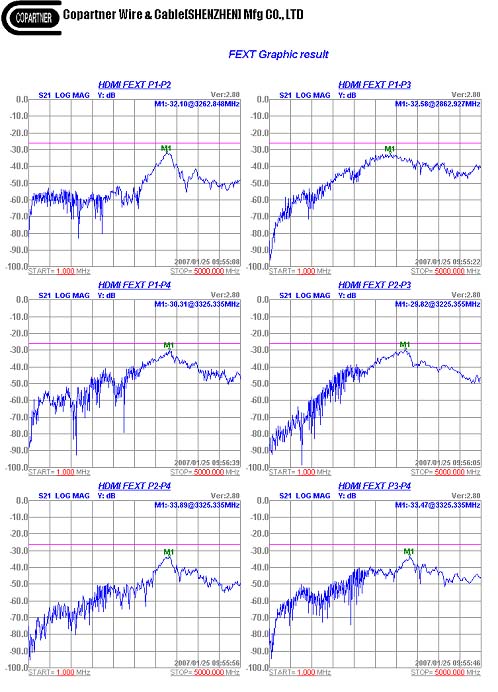 檢查一下1、4對(duì)的導(dǎo)體直徑、直流電阻與其它線(xiàn)對(duì)是否相同,衰減曲線(xiàn)整體比較平滑,只是1、4對(duì)低頻下降比較快,而且串音效果存在薄弱點(diǎn),屏蔽搭蓋率及緊密度是否有問(wèn)題,同時(shí)測(cè)試阻抗只有96左右,是否可以在加大一點(diǎn)發(fā)泡度(降低在線(xiàn)電容),衰減效果可能會(huì)更好。