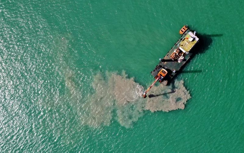 2018年11月15日,在瓊州海峽廣東側(cè)海域,水陸兩棲挖溝船開始對海南聯(lián)網(wǎng)二回工程路由段進(jìn)行預(yù)挖溝,標(biāo)志著海南聯(lián)網(wǎng)二回工程海上部分施工正式實(shí)施。(李品 龐燚)