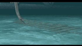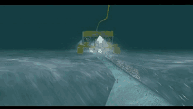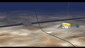在珊瑚礁及黏土區(qū),用切割機(jī)切割一條海底溝槽。