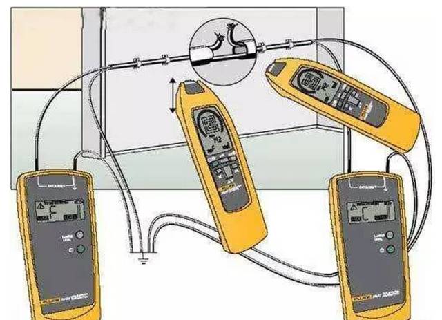 首先排除斷點(diǎn)電纜周圍的電纜有電源,然后將有斷點(diǎn)的電纜接在火線上,然后用感應(yīng)電筆垂直于電纜緩慢移動(dòng),當(dāng)感應(yīng)電筆的交流信號(hào)消失時(shí),即可判斷斷點(diǎn)在該檢測(cè)點(diǎn)處,誤差最多不超過(guò)10cm。
