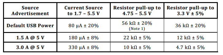 Rp有6個參數(shù)(5V檔位和3.3V檔位各3個),指示著不同的供電能力。