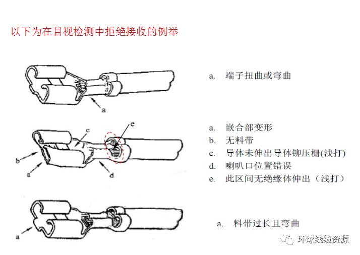 4. 芯線鉚壓柵、被覆固定柵中間溝槽不可有間隙,不可兩邊帶毛刺