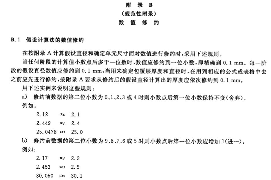 除B.1考慮的用途外,有可能有些數值需要修約到多于一位小數,例如計算幾次測量的平均值,或標稱值加上一個百分率偏差以后的最小值。在這些情況下,應按有關條文修約到小數點后面的規(guī)定位數。