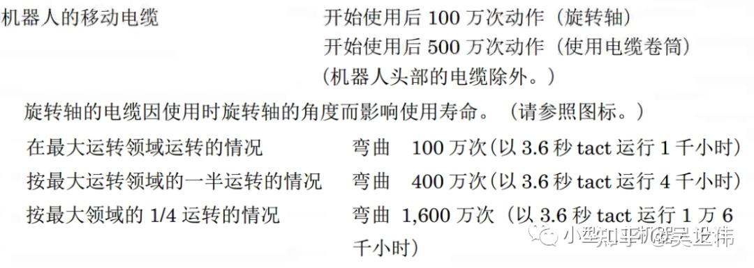 2、本質(zhì)上來說,線纜跟電機減速機一樣,也是需要定期檢查更換的。而更換周期跟測試平臺的測試周期不同測試平臺是長期大角度高速運動,而實際機器人絕大多數(shù)是有停頓,這不僅是扭轉(zhuǎn)角度問題,還有熱量積累問題,持續(xù)的扭轉(zhuǎn)會有能量的集中,磨損更快,這里不是線性的,而是指數(shù)型降低。關(guān)于更換周期,不同廠家的建議值不同,但大多并不是到期就換,而是定期檢查,有隱患才換,畢竟一套線換下來可不便宜。不同廠家建議更換周期不同,下面只是某一家的參考。