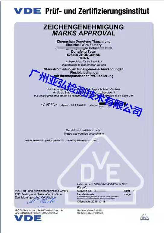 熱烈慶祝我司客戶【中山天之龍】順利拿到電線VDE證書,在此祝貴公司生意興隆,財源滾滾感謝所有客戶朋友對我司的信任與支持!
