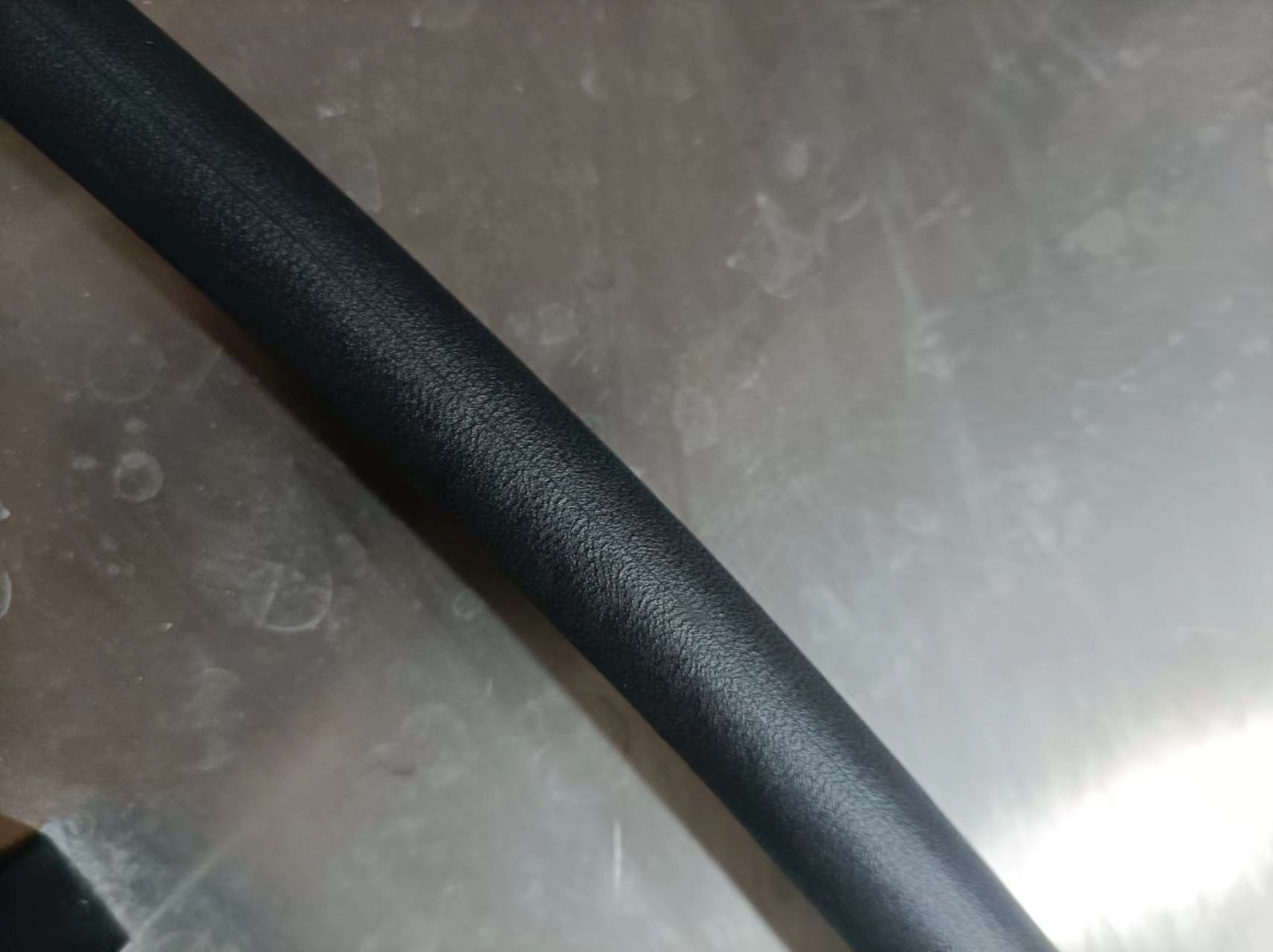如圖,霧面TPU生產(chǎn)過(guò)程中表面不定期出現(xiàn)有一條線(xiàn)狀發(fā)亮問(wèn)題,溫度調(diào)整無(wú)法解決,現(xiàn)在每天中途都要拆機(jī)頭,打螺桿。
