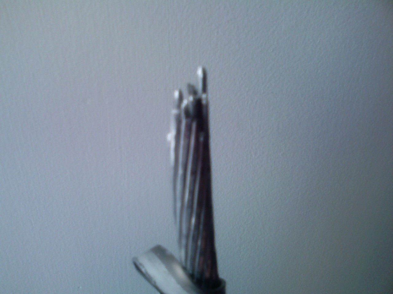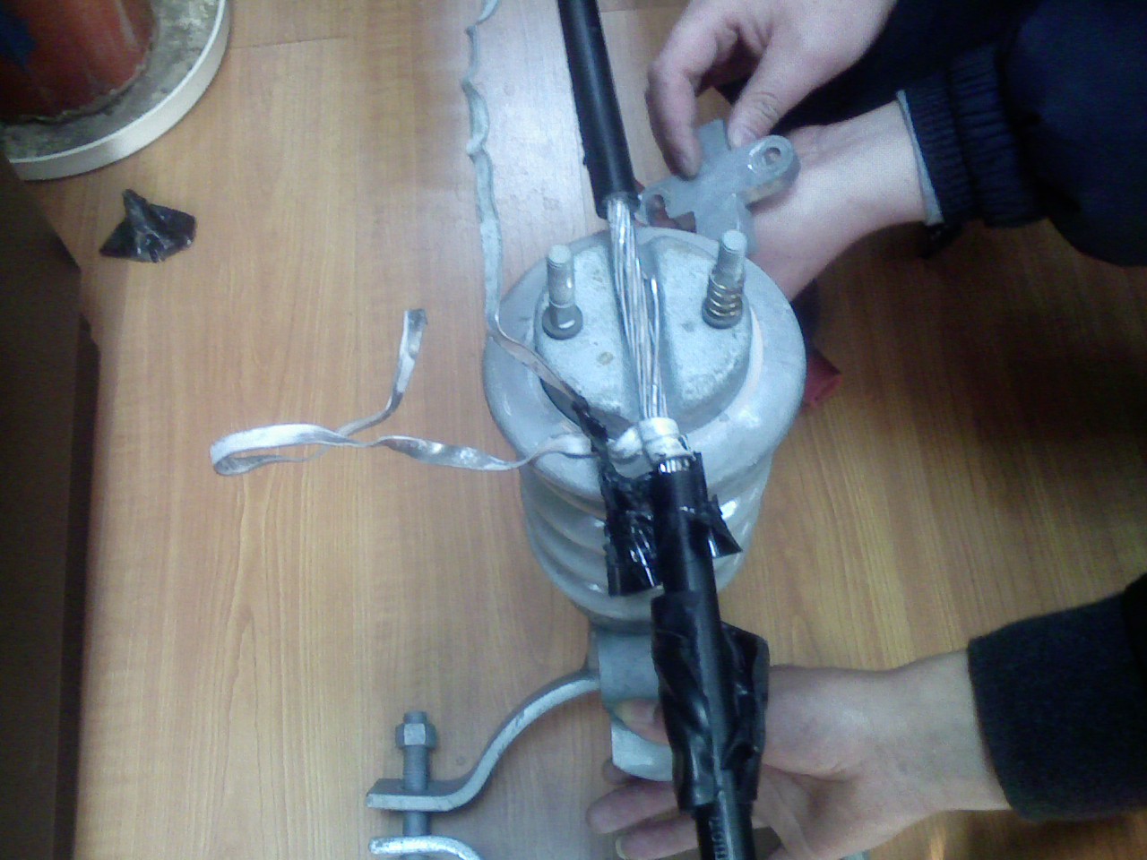 根據(jù)斷頭分析:內(nèi)層芯線(xiàn)斷頭凹在里面,外層鋁單絲呈尖型.估計(jì)型號(hào)是鋼芯結(jié)構(gòu)的絕緣架空線(xiàn).這是由于鋼芯焊接頭斷開(kāi),外層鋁單絲明顯受到大強(qiáng)度拉力而斷開(kāi)后的,由于鋁單絲強(qiáng)度達(dá)不到標(biāo)準(zhǔn),造成導(dǎo)體抗風(fēng)振能力降低而斷裂的!