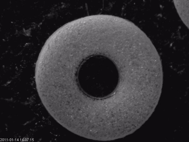 我前不久見到一條同軸樣品線,才知道什么叫完美,拿到手上感覺(jué)就像實(shí)心的一樣,很光滑很硬,切片在顯微鏡下看: